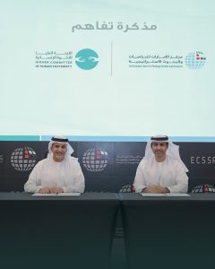 وقّع سعادة السفير الدكتور خالد غانم الغيث، الأمين العام للجنة العليا للأخوة الإنسانية، مذكرة تفاهم مع سعادة الدكتور سلطان محمد النعيمي، المدير العام لمركز الإمارات للدراسات الاستراتيجية والبحوث. تهدف مذكرة التفاهم إلى تعزيز التعاون الدولي وتبادل المعرفة في مجالات البحث العلمي والتعايش السلمي.